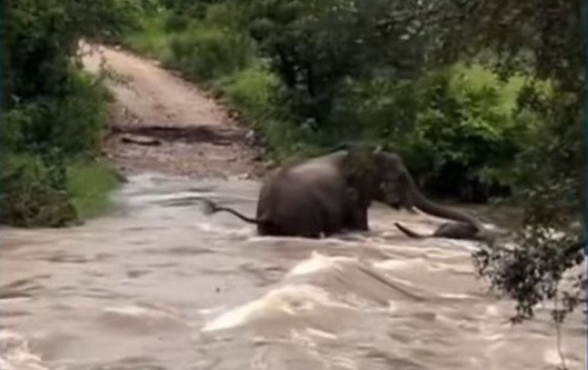 Um vídeo registrado no Parque Nacional Kruger, na África do Sul, capturou o momento em que uma elefanta salvou seu filhote de ser arrastado por uma for...